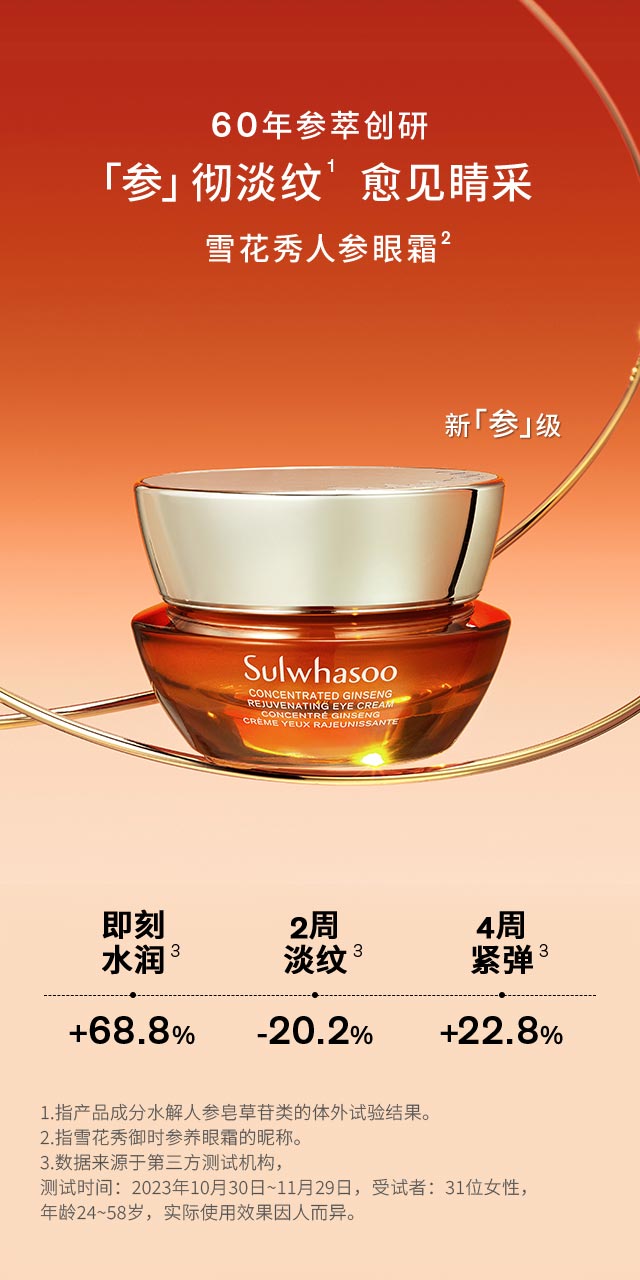 AG旗舰厅人参眼霜 60年参萃创研 「参」彻淡纹 愈见睛采